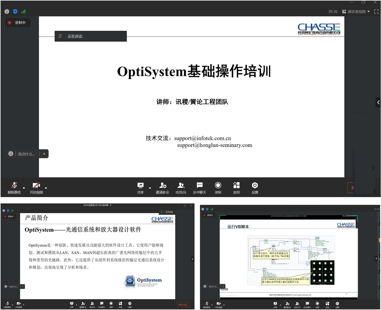 本次講座聚焦光通信系統(tǒng)設(shè)計(jì)的核心工具OptiSystem軟件。訊技工程師主要通過(guò)拉曼放大器設(shè)計(jì)、軟件編程功能拓展、光波導(dǎo)仿真技術(shù)、FSO系統(tǒng)建模等深度解析技術(shù)應(yīng)用。
