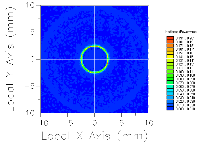 導(dǎo)光管的一端設(shè)定有平面隨機(jī)點(diǎn)光源,在初始狀態(tài)下,分析面上的輻射分布如下圖