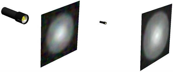 圖3 在兩個(gè)不同距離處手電筒照明的彩色圖:0.1m(左)和0.5m(右)