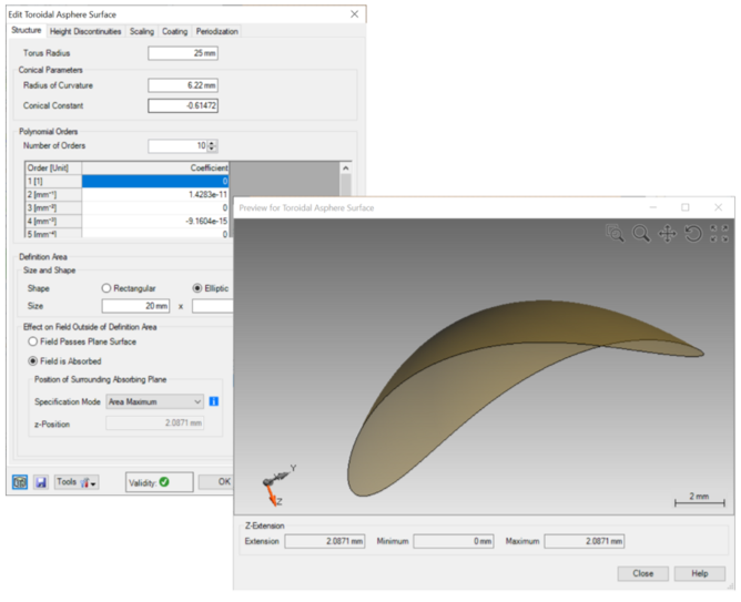 我們實(shí)現(xiàn)了以下新的曲面類型:Anamorphic非球面,Q-Type非球面和Toroidal非球面。也可從Zemax導(dǎo)入相應(yīng)的面型。