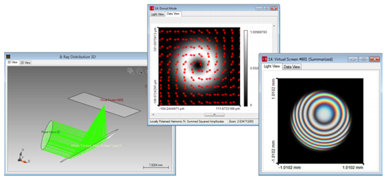 計(jì)算干涉圖并模擬干涉儀:計(jì)算兩個(gè)或兩個(gè)以上的光分布的干涉圖樣,模擬有相干光源的干涉儀。