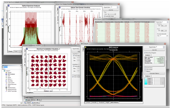 OptiSystem:集現(xiàn)代光學(xué)網(wǎng)絡(luò)傳輸層光鏈圖的設(shè)計(jì)、測試和建模于一體的綜合軟件設(shè)計(jì)組件。能夠幫助用戶從LAN,SAN,MAN到超長距傳輸,完成光網(wǎng)絡(luò)寬光譜傳輸層任意類型的光鏈路的設(shè)計(jì)、測試和模擬。除此以外,OptiSystem能夠進(jìn)行諸如0/1層數(shù)據(jù)通道設(shè)計(jì)(m-QAM、m-PAM等),網(wǎng)絡(luò)接入設(shè)計(jì)(OADM,電光多路復(fù)用等),傳感器系統(tǒng)設(shè)計(jì)(LIDAR,光纖陀螺儀等) ,EDFA/Thullium DFA設(shè)計(jì) ,5G設(shè)計(jì),F(xiàn)SO,RF射頻鏈路等。用戶可以與Optiwave其它軟件工具如OptiSPICE以及MATLAB,SciLab,Python等通用軟件集成,能夠很方便地生成結(jié)果報(bào)告。