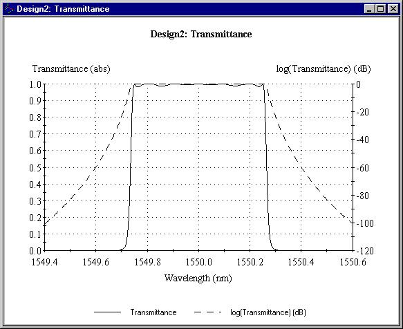顯示候選設(shè)計(jì)結(jié)果的特性,并按用戶指定的方式進(jìn)行排列,如總的膜層厚度, 沉積時(shí)間和脈動(dòng)性能。通過脈動(dòng)優(yōu)化算法,增加只是由1/4波長厚度的膜層組成的結(jié)構(gòu),減少通帶中的脈動(dòng),使DWDM助手中使用的對(duì)稱周期技術(shù)功能增強(qiáng)。一般來說,對(duì)給定要求的濾波器,有許多的設(shè)計(jì)都滿足要求,但DWDM 助手可以按評(píng)價(jià)標(biāo)準(zhǔn)對(duì)設(shè)計(jì)結(jié)果進(jìn)行排列。