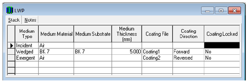 圖1-2.輸入?yún)?shù)的堆棧文件。注意BK7介質(zhì)的介質(zhì)類型是楔形。