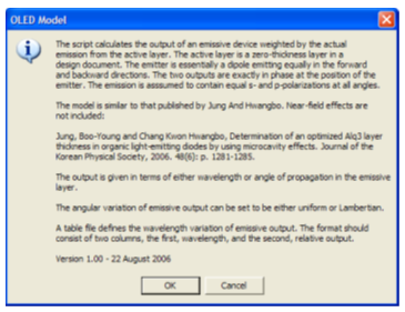 一份design文件包含至少一層零厚度層,并指定發(fā)光層,必須在腳本運行前打開。如果有不止一層零厚度層,那么最后一層將被選為反射層。遇到問題時請發(fā)郵件至support@infotek.com.cn。