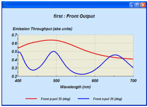 圖5. 輻射從器件前表面出射,與從發(fā)射層直接出射進行對比。