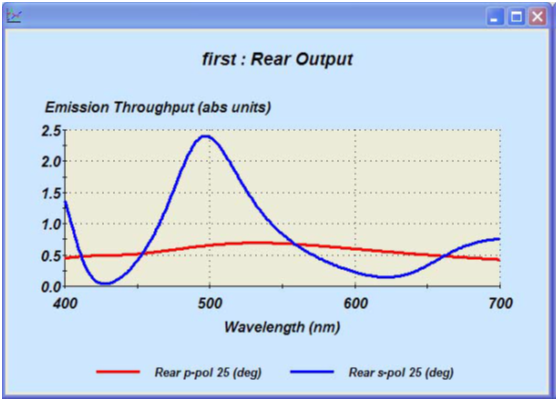 以上結(jié)果均假設(shè)為法向入射。如果引入傾斜入射,所有y被合適的傾斜導(dǎo)納η替代,可以得到該情況下的結(jié)果。離開多層結(jié)構(gòu)的光線將以適當(dāng)?shù)娜肷浣嵌葌鞑ィ梢酝ㄟ^斯涅耳定律計算得到該角度。實際計算的輻照度是垂直于界面的分量。如果分量在橫向范圍受到限制,那么這些輻照度將轉(zhuǎn)換為總光束功率,無需進一步校正。