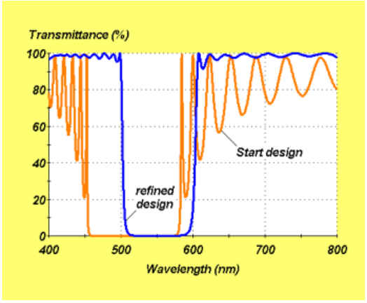 完全自動(dòng)化的設(shè)計(jì)和制造,所需要的只是一個(gè)規(guī)格要求和一個(gè)開始按鈕,但是到目前為止,實(shí)現(xiàn)這個(gè)目標(biāo)還有一段路要走。對(duì)于光學(xué)薄膜的設(shè)計(jì),我們?nèi)匀恍枰獜臉I(yè)人員豐富的技能和經(jīng)驗(yàn)。好消息是,Macleod強(qiáng)大的優(yōu)化與合成技術(shù)可以將這個(gè)苦差事從設(shè)計(jì)操作中解脫出來。從業(yè)人員所需要的只是對(duì)如何以及何時(shí)使用它們的一點(diǎn)了解。優(yōu)化和合成是相似的,但優(yōu)化實(shí)質(zhì)上改善了現(xiàn)有設(shè)計(jì),而合成實(shí)際上可以構(gòu)建一個(gè)膜系。