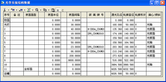 圖5.雙光楔變形系統(tǒng)初始結(jié)構(gòu)參數(shù)表