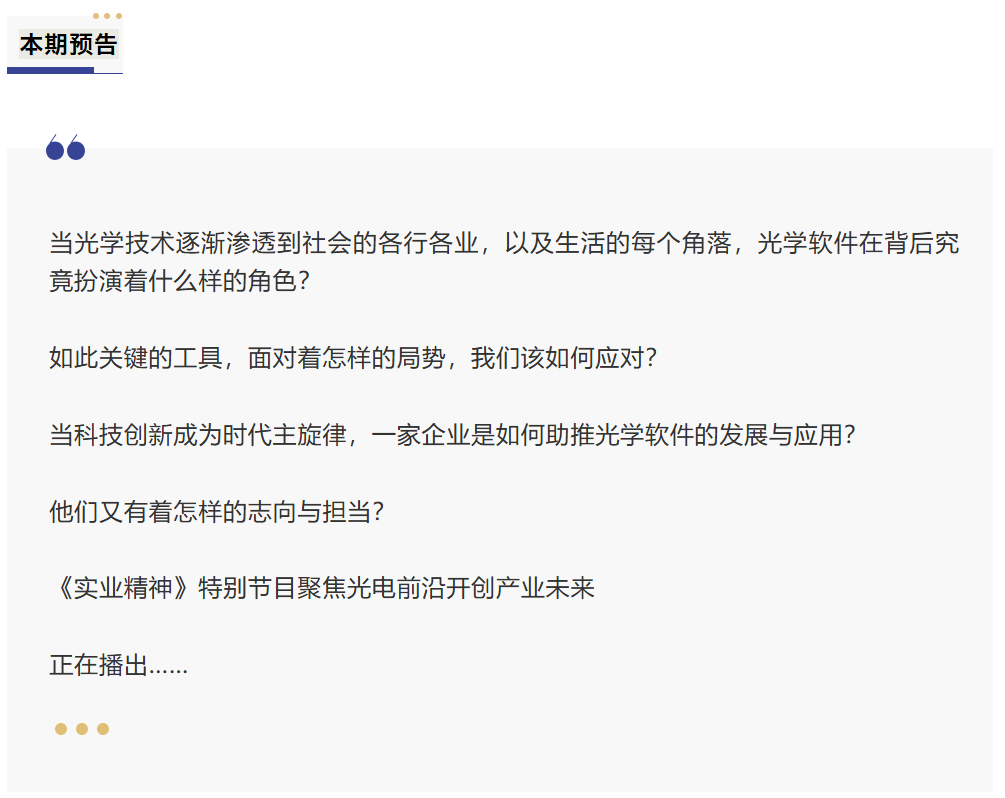 《實(shí)業(yè)精神》訪談篇預(yù)告|海霞對(duì)話朱霞:“聚焦”光電前沿 開(kāi)創(chuàng)產(chǎn)業(yè)未來(lái)