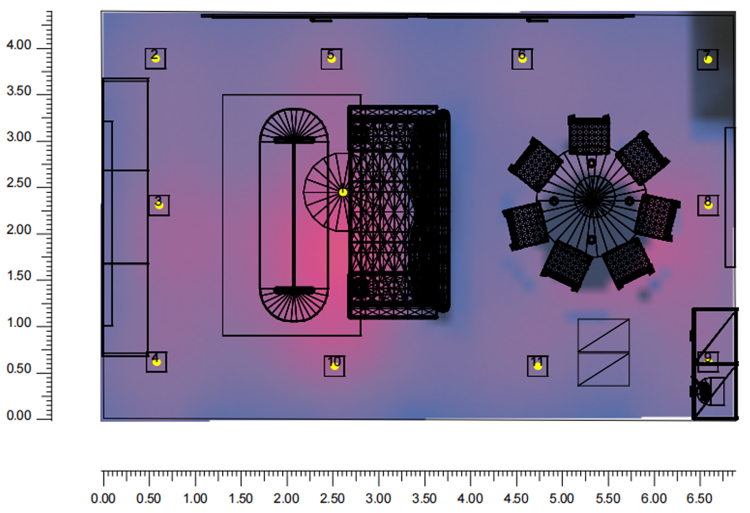 偽色彩圖顯示燈具所照射范圍基本為淡紫色,顏色過(guò)渡平緩,照度分布較為均勻