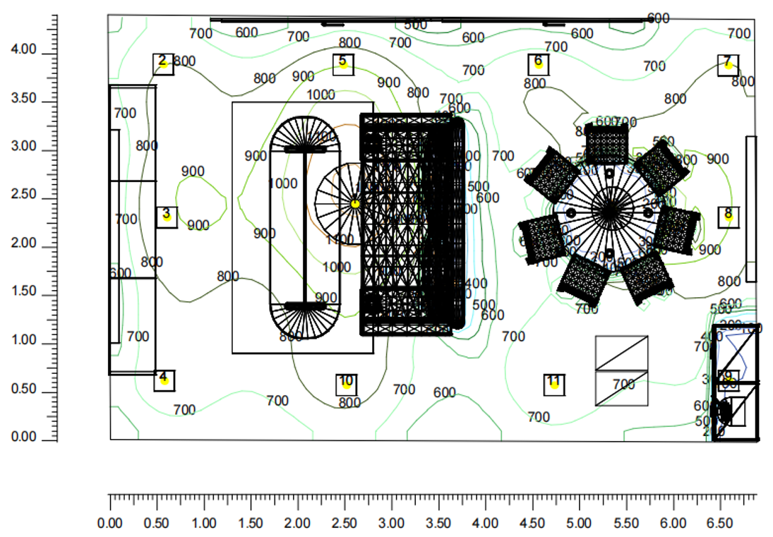 數(shù)值圖顯示區(qū)域照度為700lx-800lx