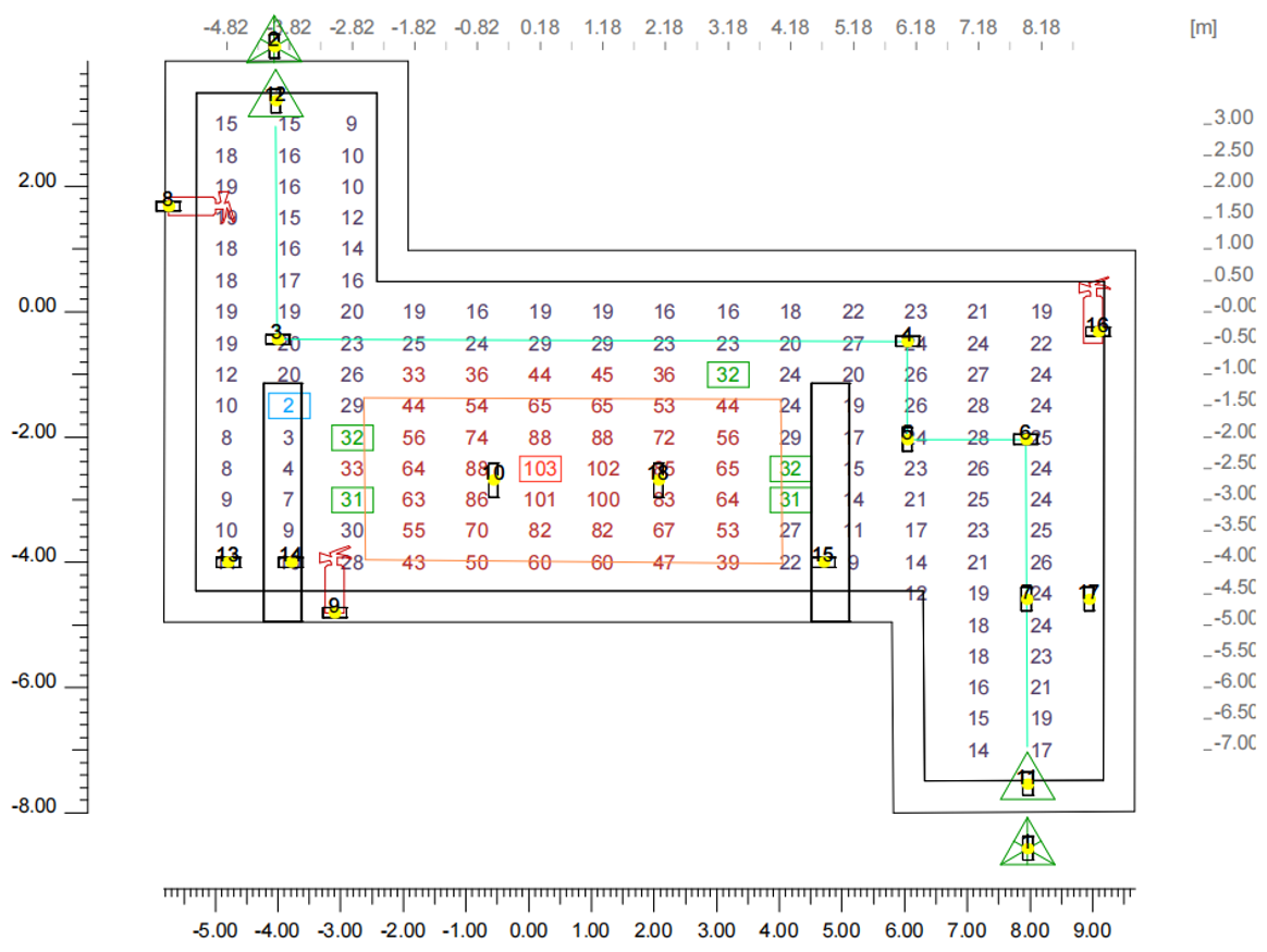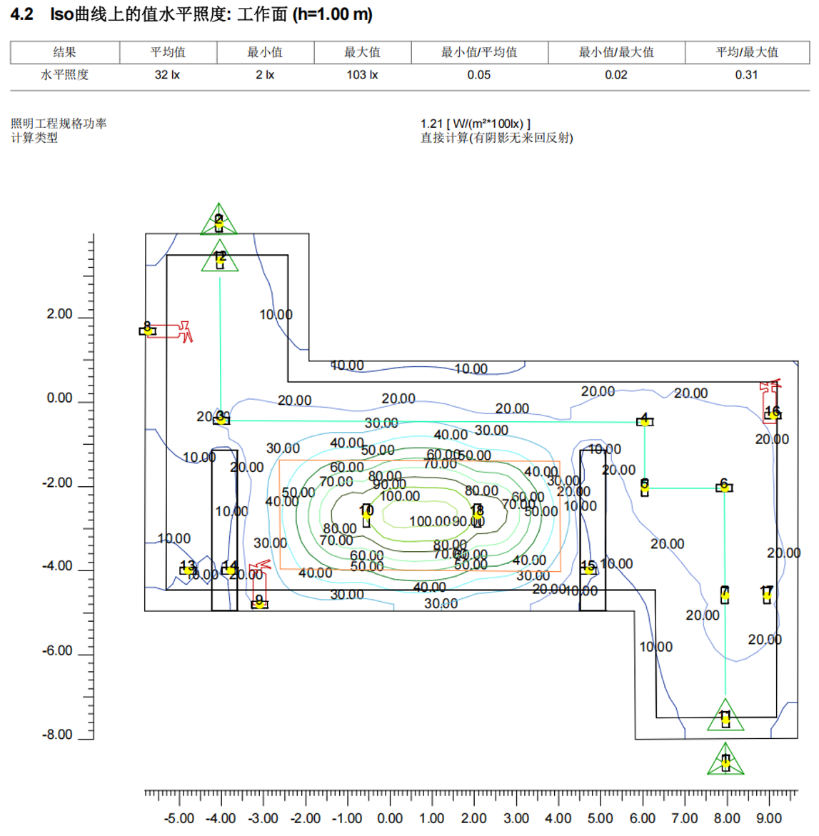 數(shù)值圖顯示區(qū)域照度為30--80lx。