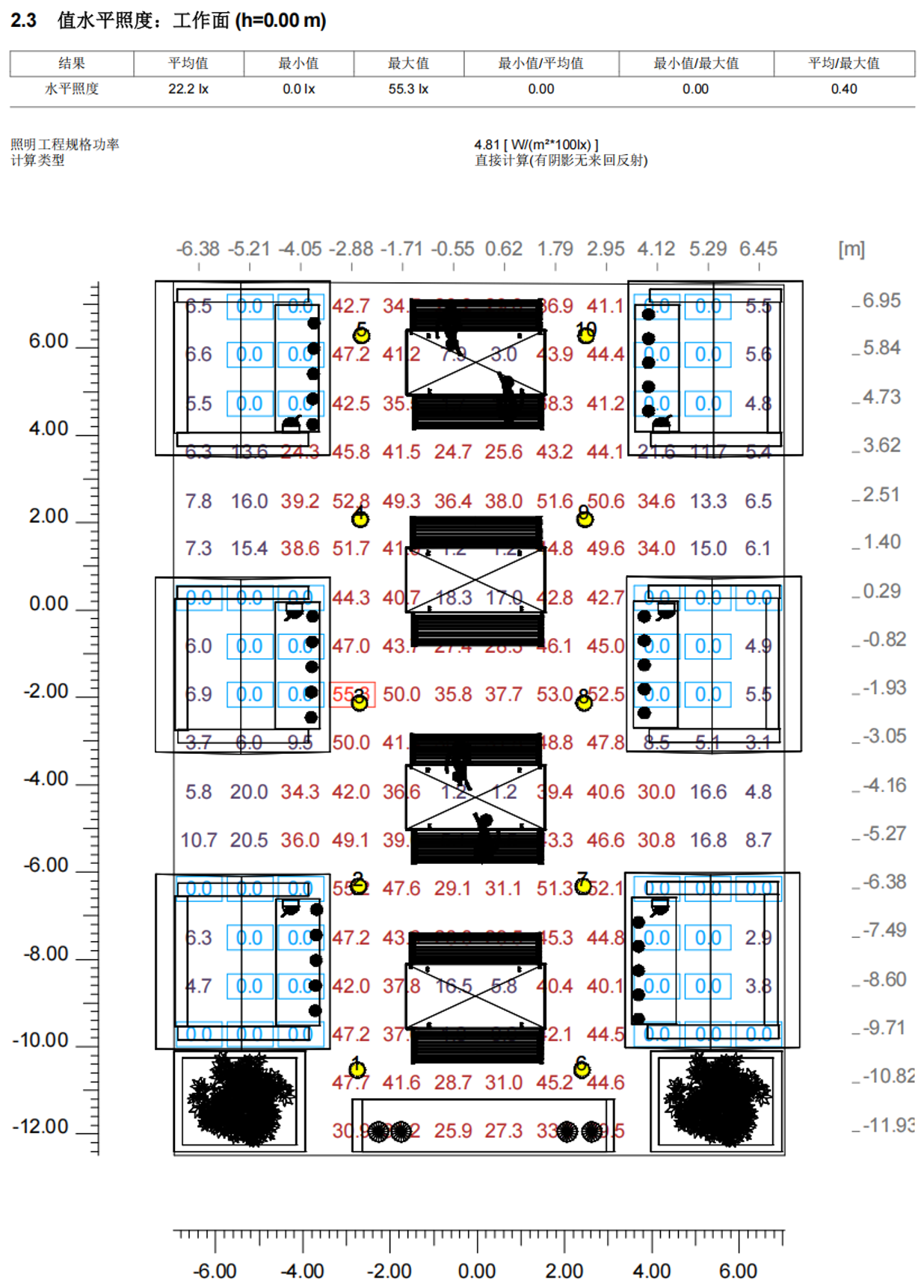 數(shù)值圖顯示區(qū)域照度為20lx-50lx