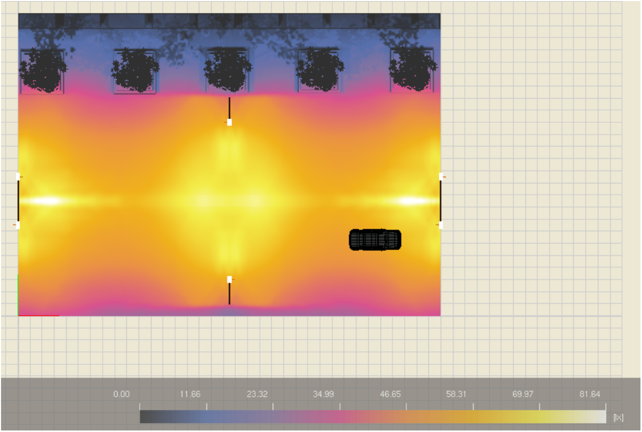 偽色彩圖顯示燈具所照射范圍基本為暖黃色到淡紫色,顏色過渡平緩,照度分布較為均勻