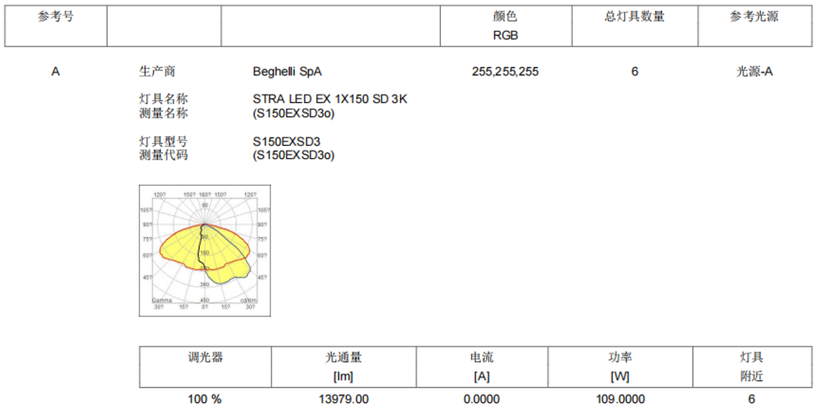 以上為本次案例所用燈具安裝數(shù)據(jù)