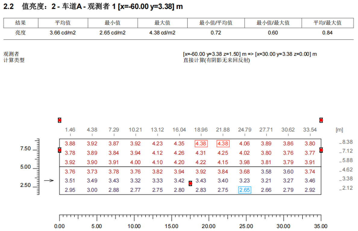 數(shù)值圖顯示區(qū)域亮度為2.65-3.66cd/㎡