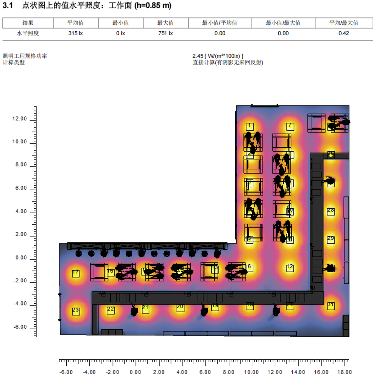 設(shè)計場所面積合理,其中布置燈具擺放合理,符合照明標(biāo)準。