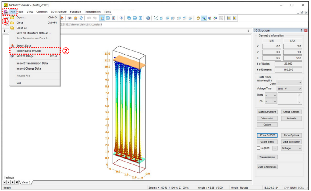 b) ① 文件→ ② 選擇按網(wǎng)格導(dǎo)出數(shù)據(jù)