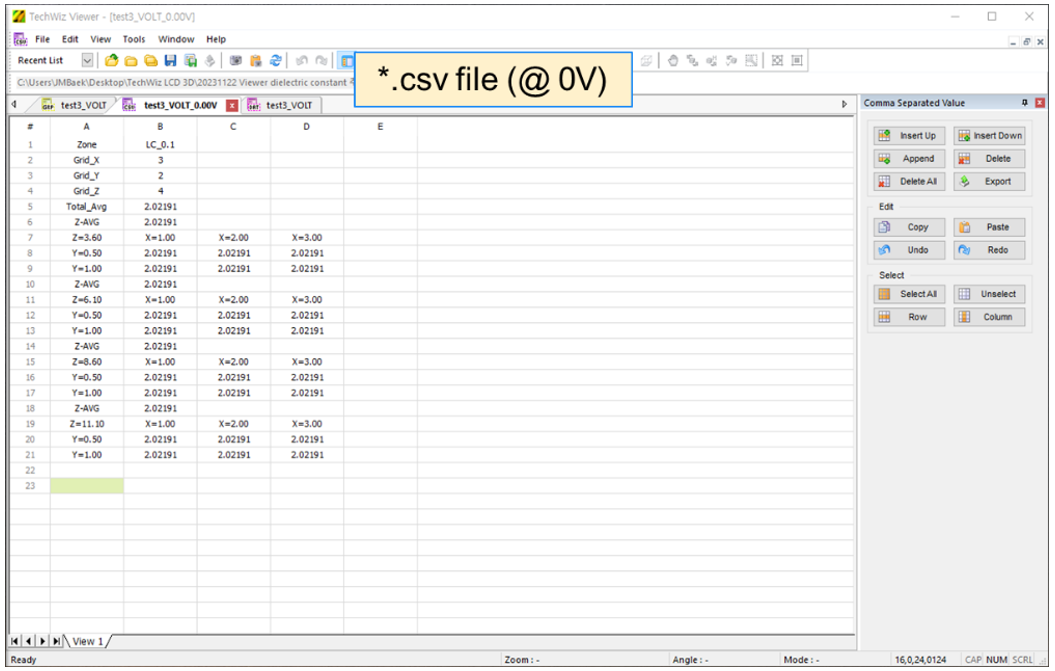 e) 提取后,保存各電壓的平均介電常數(shù)圖和csv文件。