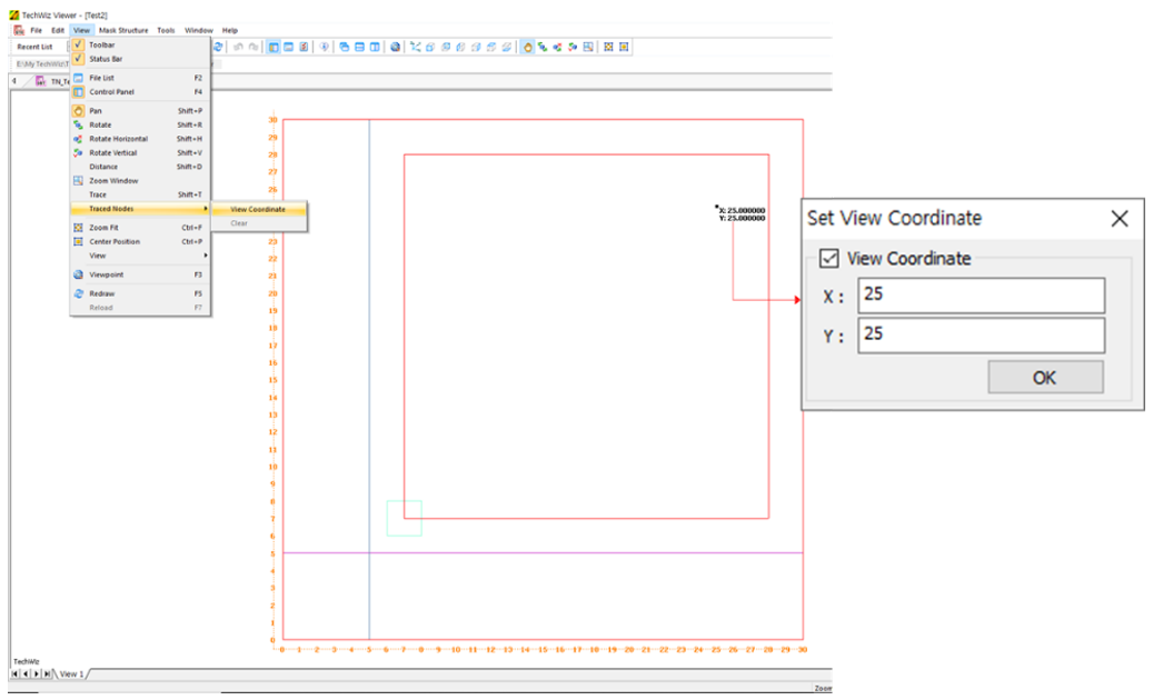 Viewer / View / Traced Nodes / ‘View Coordinate。
