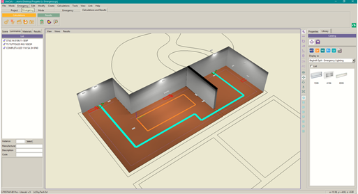 根據(jù)用戶通過相應(yīng)對話框定義的照明參數(shù)集(僅適用于Emergency Plus版本),自動為不同區(qū)域選擇光源的位置。 該程序會自動檢查所達(dá)到的照度水平,并在不一致的情況下建議自動添加燈具,直到達(dá)到預(yù)期水平