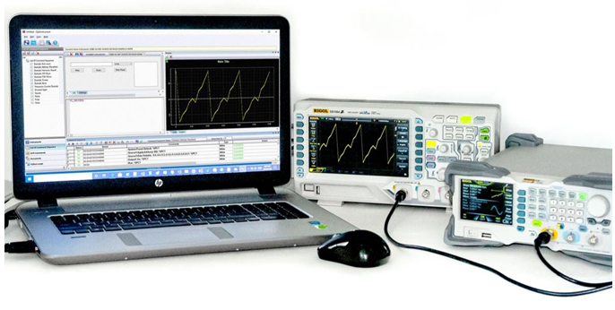 圖2.使用OptiInstrument軟件通信和控制一個函數(shù)發(fā)生器和一個示波器