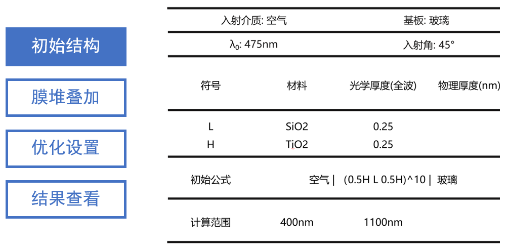 初始結(jié)構(gòu)是一個周期性的對稱膜堆:(0.5H L 0.5H)^10。