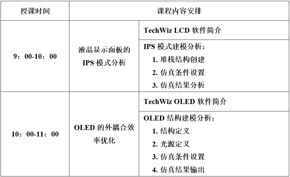 主題七:液晶顯示面板的IPS模式分析和OLED的外耦合效率優(yōu)化(周五上午)