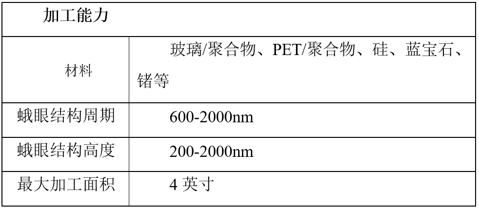 目前,我們采用納米壓印技術,可以在玻璃或塑料膜表面制作大面積的蛾眼結構,實現(xiàn)減反效果。在可見光范圍內可以將材料表面的反射率降低到小于0.2%。在紅外波段,結合納米壓印和等離子刻蝕工藝,可以在硅表面加工蛾眼結構來減少其對紅外光的反射。
