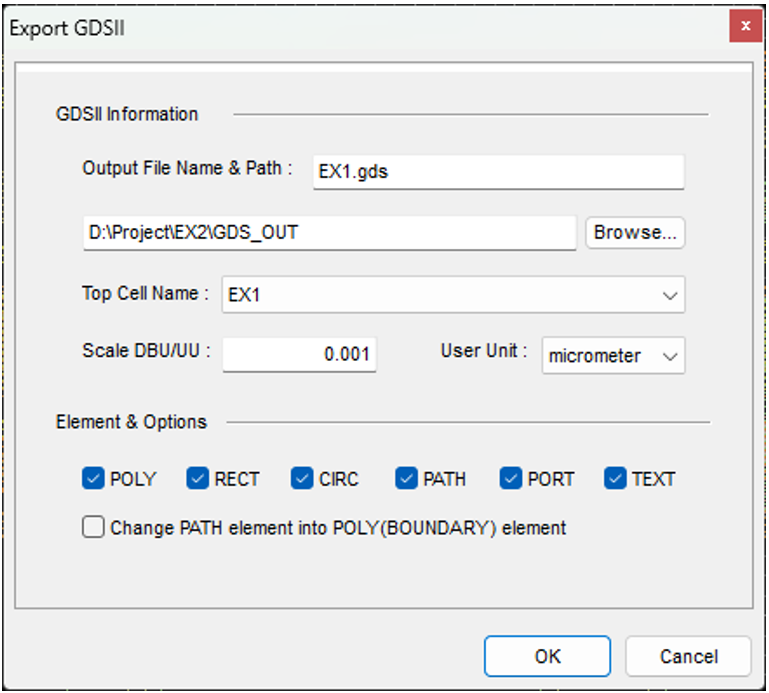 2.2 設(shè)置導(dǎo)出GDSⅡ文件的一些必要信息,并點擊OK按鈕