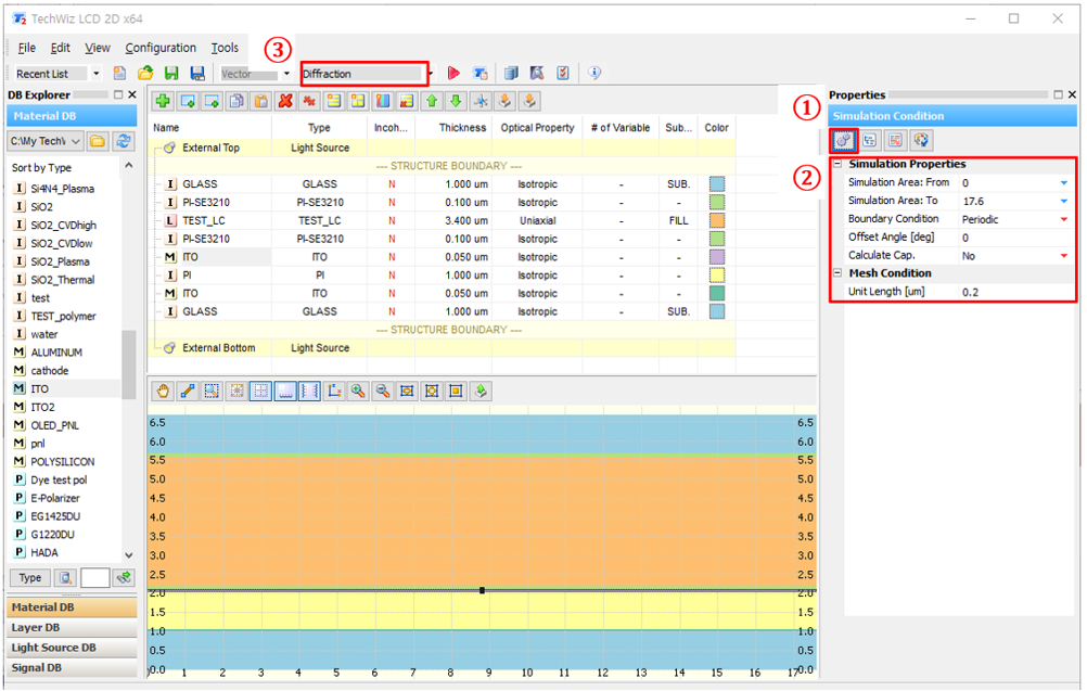 2.1結(jié)構(gòu)生成,其中將光學(xué)求解器設(shè)置為“Diffraction”