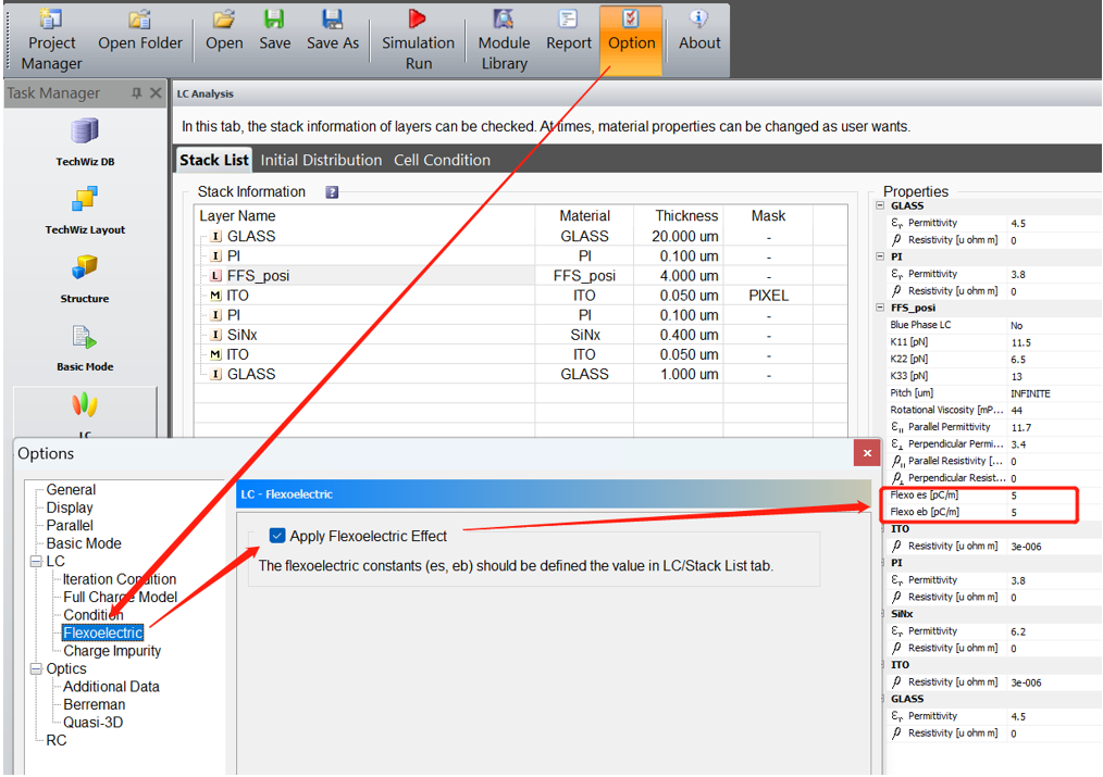 2.2在TechWiz LCD 3D軟件中開啟應(yīng)用撓曲電效應(yīng)的功能