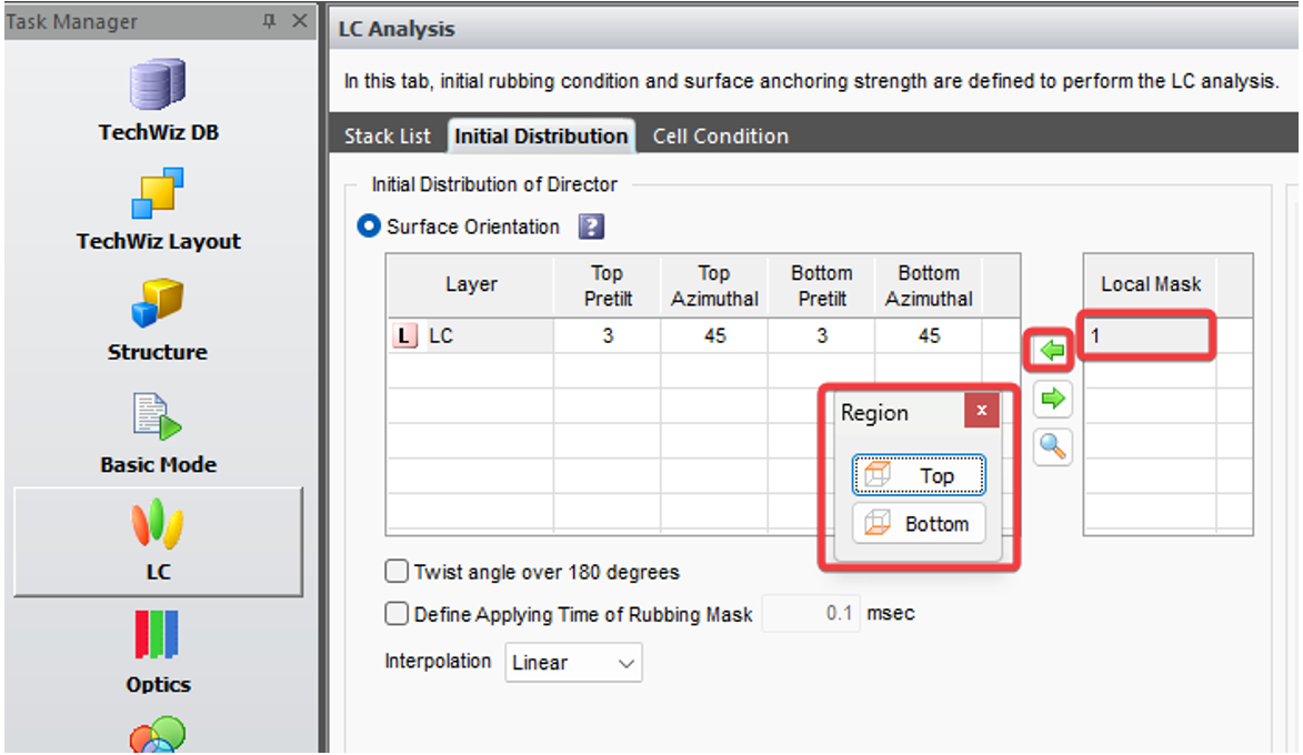 2.2在TechWiz LCD 3D軟件中將Local Mask的頂部以及底部配向角度添加進來