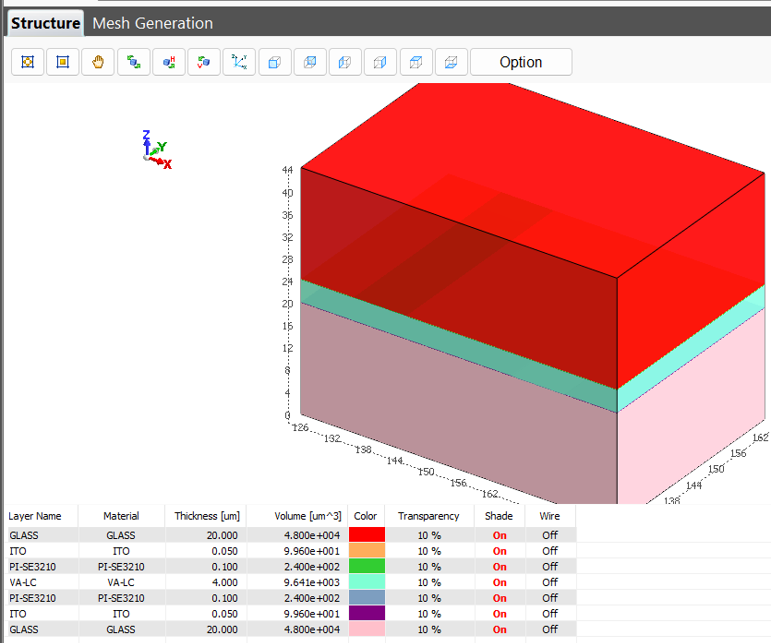 結構創(chuàng)建完成后在TechWiz LCD 3D中加載并進行相關參數設置