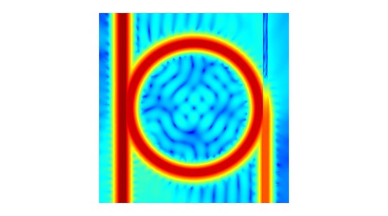 上述器件的散射模擬涉及兩個步驟。首先,計算進入器件的波導(dǎo)模式。這些都不是像平面波源那樣的解析解,因此它們是用有限元數(shù)值方法得到的。對于二維環(huán)形諧振腔,計算了一維傳播模式(平板波導(dǎo)模式)。