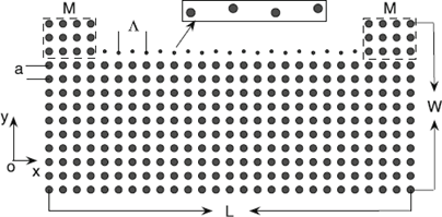 □ 采用周期陣列,創(chuàng)建光子晶體。將部分元胞刪除,形成表面腔。