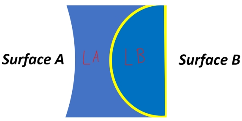 PanDao的膠合工藝涵蓋兩個光學(xué)表面的膠合,例如將透鏡B(LB)精密膠合至透鏡A(LA)表面: