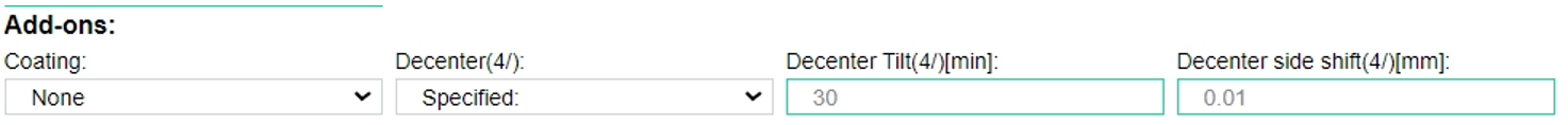 因此,對于非球面,ISO 10110標(biāo)準(zhǔn)采用如"4/x (y)"的標(biāo)注形式,其中“x”表示透鏡傾斜度(單位為角分),“y”表示允許的最大透鏡側(cè)向偏移量(單位為毫米)。