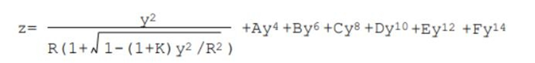 非球面是一種旋轉(zhuǎn)對稱但橫截面為非圓形的曲面,通?梢酝ㄟ^以下形式的冪級數(shù)展開式進(jìn)行描述: