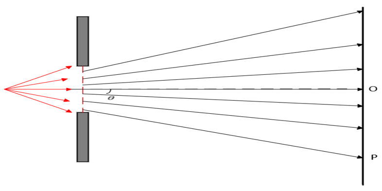 衍射物與光源及接收屏均在有限遠處的衍射稱為菲涅爾衍射,菲涅爾衍射的光源為點光源,實際實驗觀測時不需要使用透鏡,僅需在有限遠處放置光屏或觀測相機即可。單縫菲涅爾衍射的示意圖下圖所示