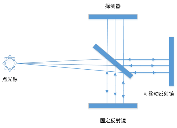 邁克爾遜干涉儀是光學(xué)干涉儀中最常見(jiàn)的一種,其原理是一束入射光分為兩束后各自被對(duì)應(yīng)的平面鏡反射回來(lái),這兩束光從而能夠發(fā)生干涉。干涉中兩束光的不同光程可以通過(guò)調(diào)節(jié)干涉臂長(zhǎng)度來(lái)實(shí)現(xiàn),從而能夠形成不同的干涉圖樣。