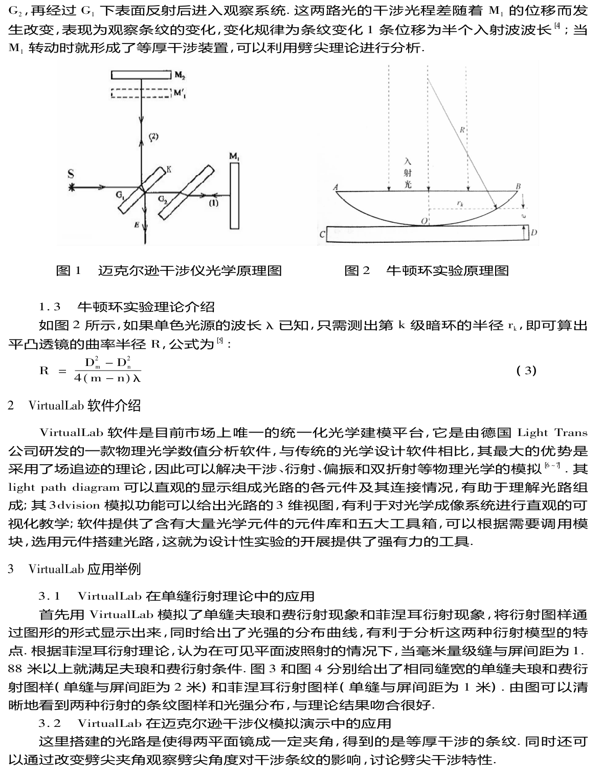 摘要:仿真模擬軟件的使用在光學(xué)研究中具有非常重要的意義。本文介紹了最新的光學(xué)建模與分析軟件VirtualL ab,通過(guò)其在光學(xué)理論和實(shí)驗(yàn)中的應(yīng)用舉例,模擬了單縫衍射現(xiàn)象,邁克耳遜干涉儀實(shí)驗(yàn)裝置和雙折射晶體產(chǎn)生的偏 振現(xiàn)象,并探討了該軟件在設(shè)計(jì)型實(shí)驗(yàn)中的應(yīng)用。