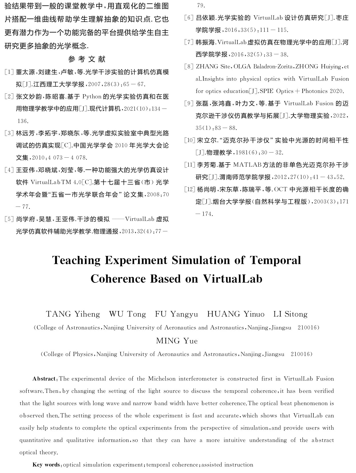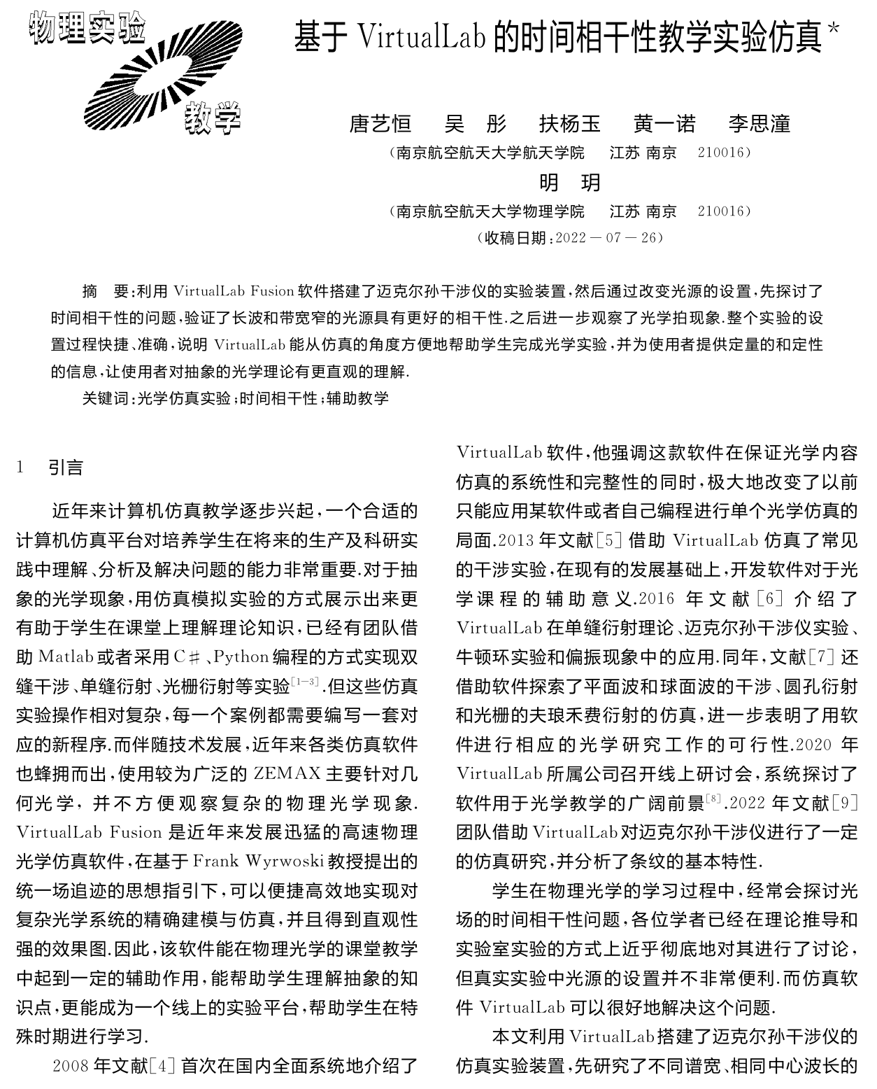 基于VirtualLab的時(shí)間相干性教學(xué)實(shí)驗(yàn)仿真