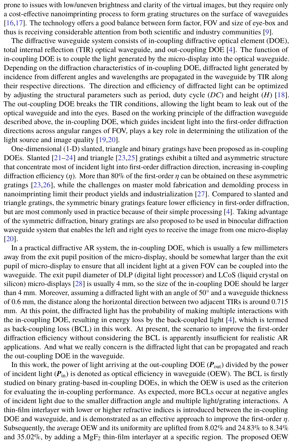通過在增強現(xiàn)實顯示器衍射光波導(dǎo)中插入光學(xué)中間層實現(xiàn)角度選擇性衍射效率增強